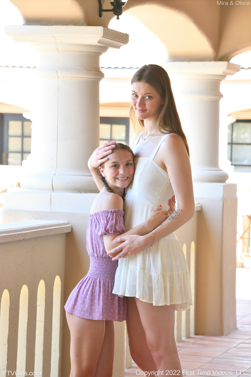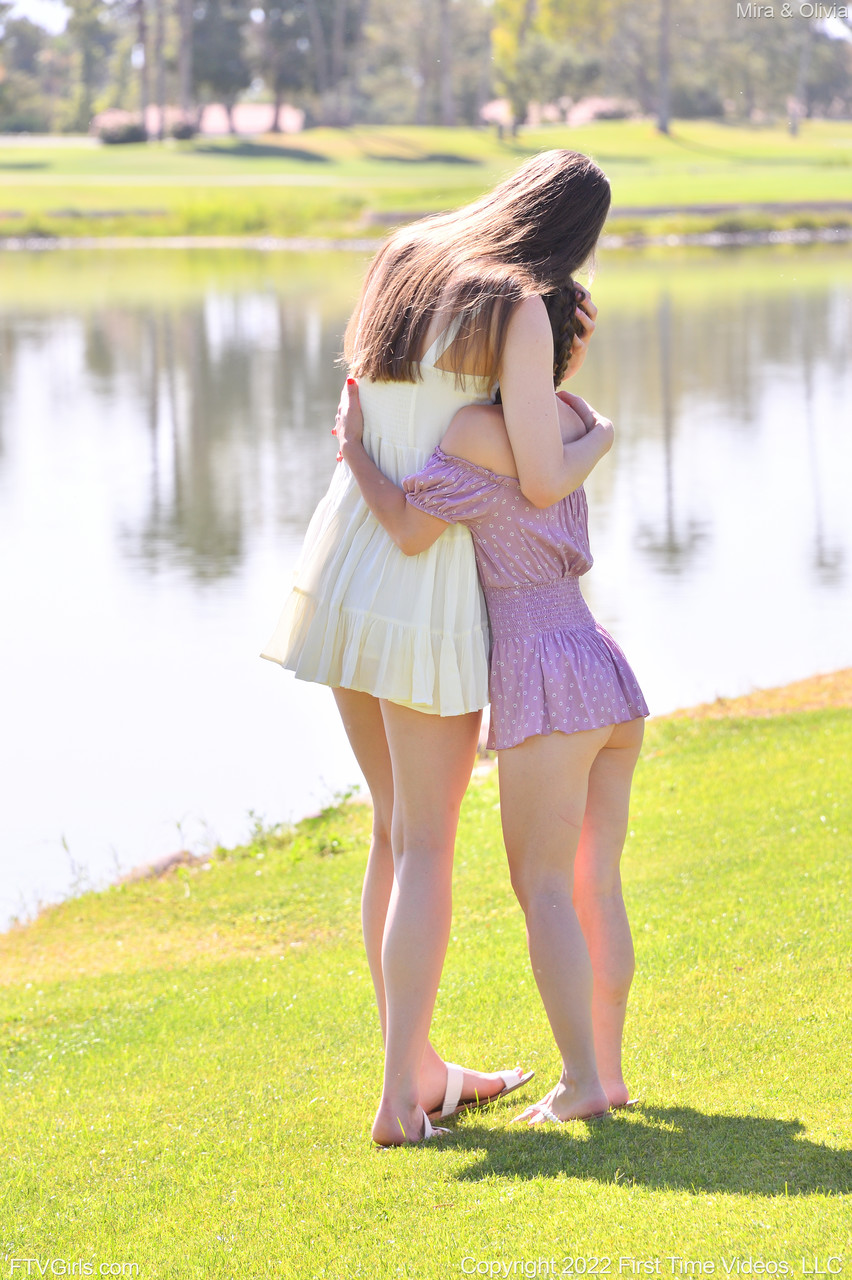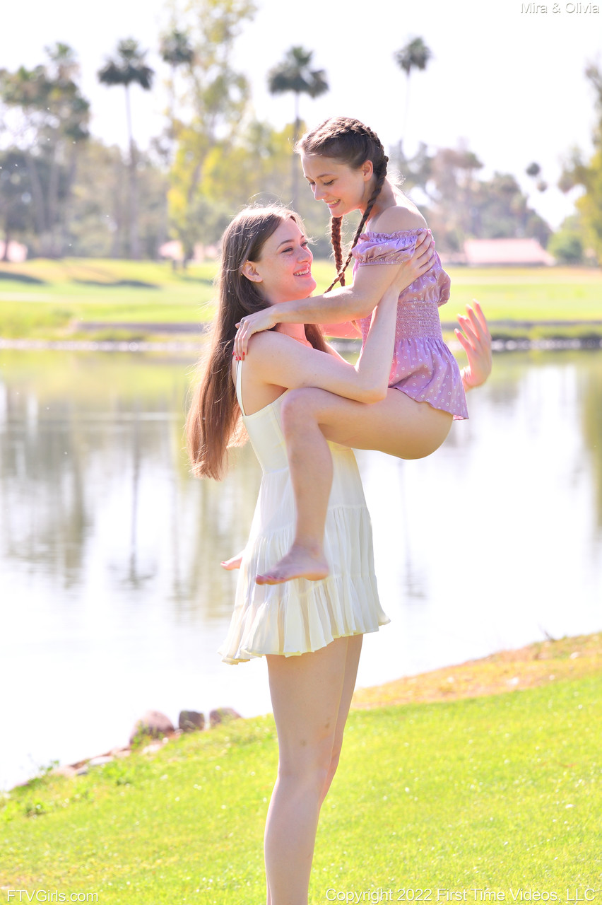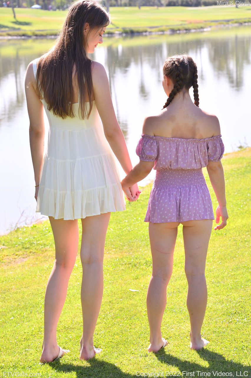 Horny Tall Babe Mira & Her Petite Friend Olivia Strip & Pose Naked Outdoors